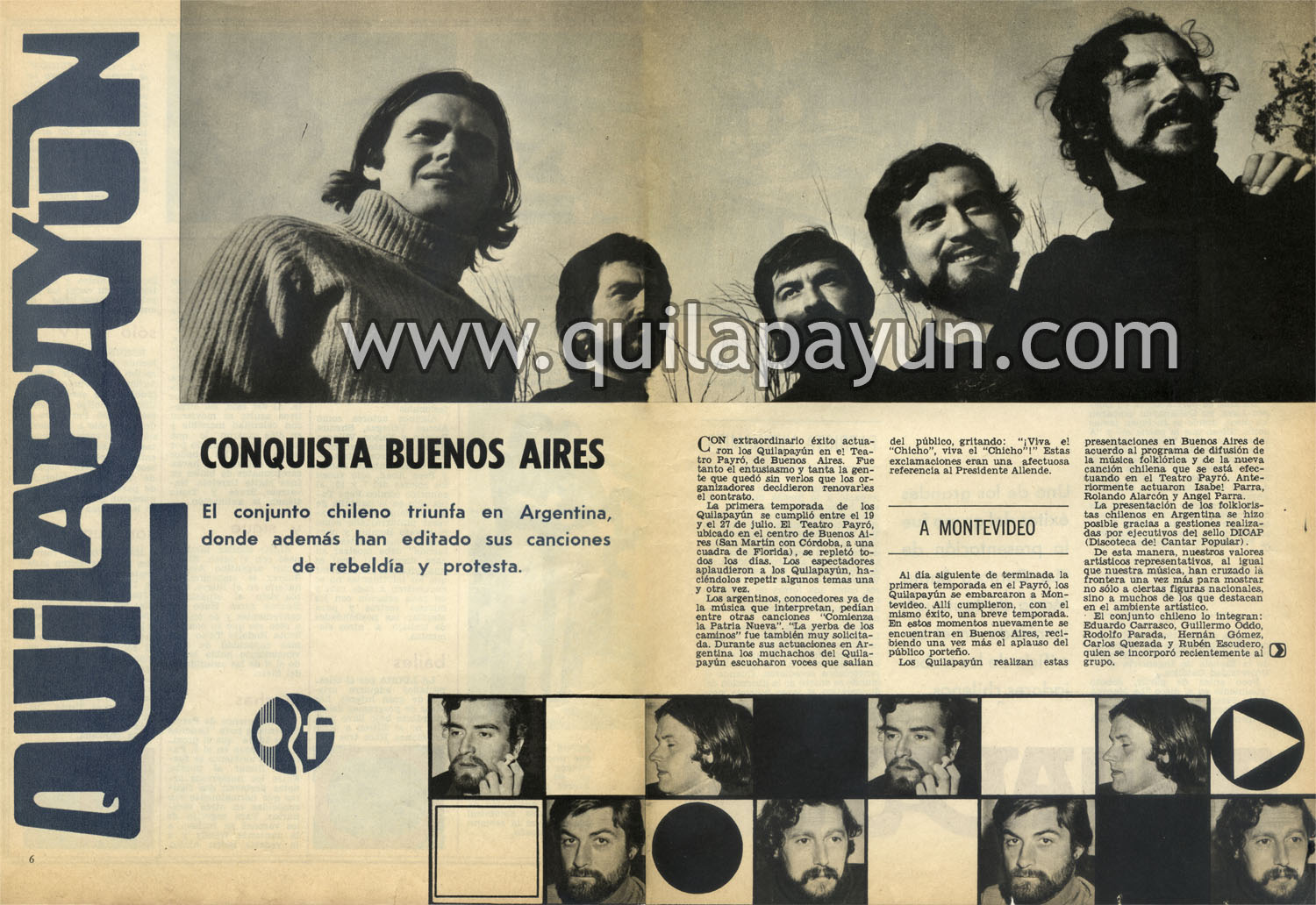 Al día siguiente de terminada la primera temporada en el Payró, los Quilapayún se embarcaron a Montevideo. Allí cumplieron, con el mismo éxito, una breve temporada. En estos momentos nuevamente se encuentran en Buenos Aires, recibiendo una vez más el aplauso del público porteño.