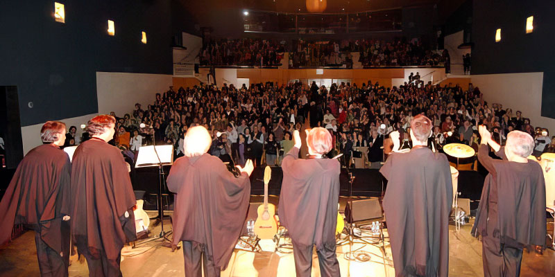 Lo primero de lo que se habló en la rueda de prensa fue del concierto en el Palau Blaugrana de Barcelona en 1974 organizado por la asociación cristiana “Agermanament”. Esta fue la primera palabra en catalán que aprendimos, quiere decir hermanamiento, Franco aún vivía y nuestras canciones se fueron directamente a la censura. Demás está decir la empatía entre estos hermanos catalanes con casi 40 años de dictadura y nosotros con nuestro trauma post 11 de septiembre. El concierto fue memorable, y las canciones, algunas con palabras transformadas no perdieron su significado, la guardia civil se paseaba entre el público con sus armas dispuesta a intervenir en caso de provocación. No pasó nada. Si no una profunda emoción compartida y anhelos de libertad que subían de lo más hondo de las almas que estaban allí presentes.